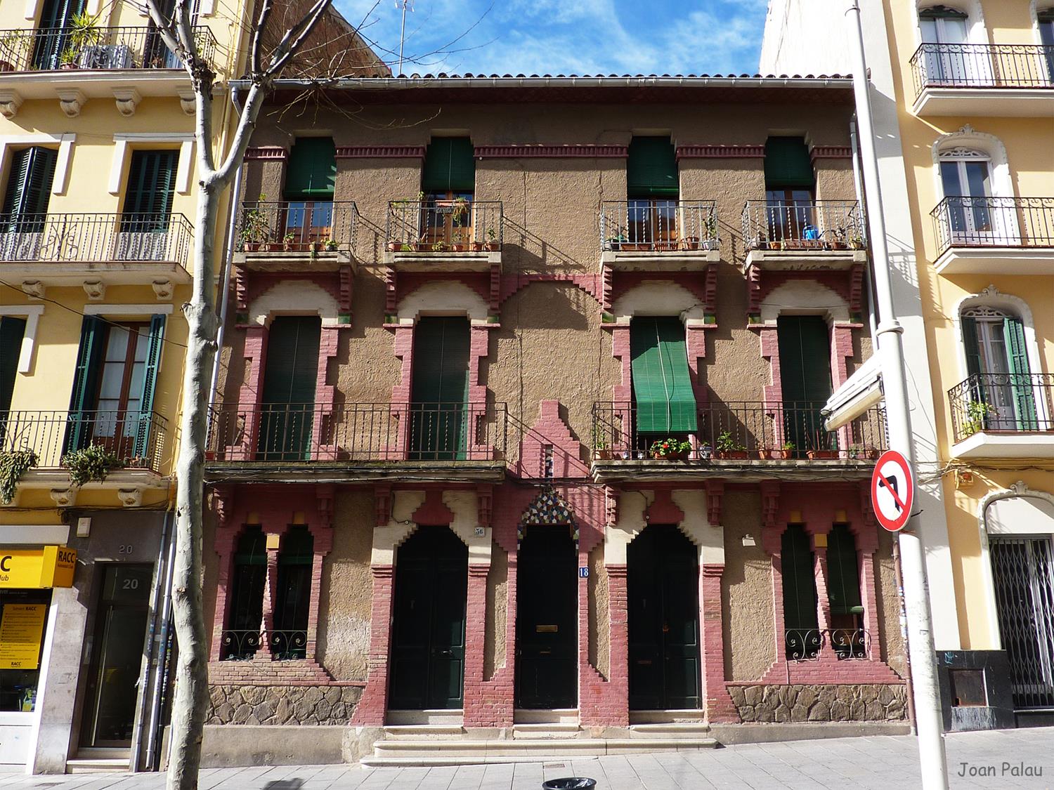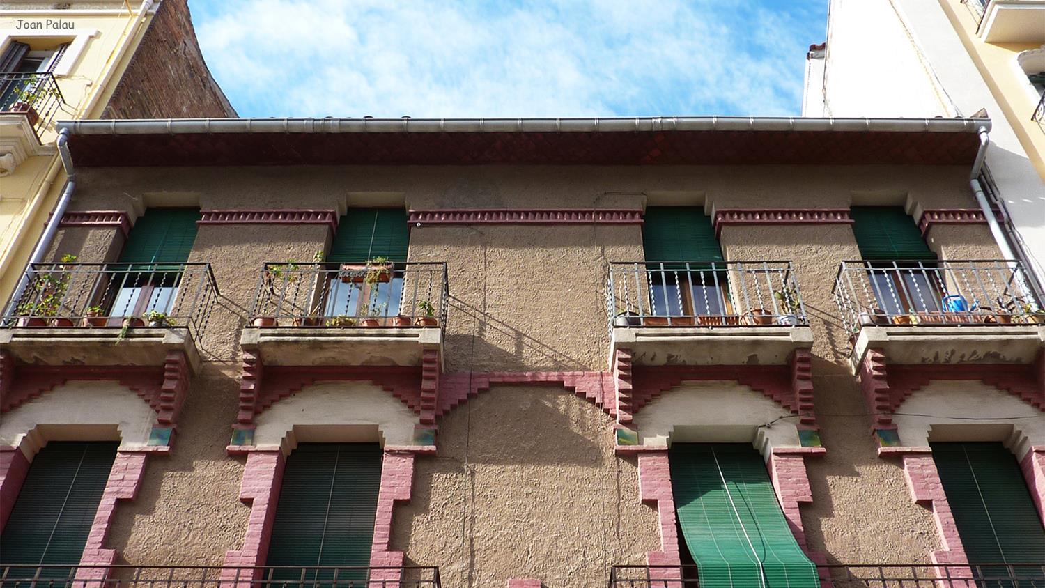És un edifici d’habitatges plurifamiliar, amb planta baixa i pati posterior, dues plantes i teulada inclinada perpendicular a la façana. Els materials utilitzats són maó vist i arrebossat, teules de pedra i ceràmica vidriada formant “trencadís” al timpà de la porta central. Les formes de l’edifici combinen diversos historicismes, en particular motius arabescs a les finestres i columnes helicoïdals de maó d’origen més barroc. La cornisa superior és de “dents d’engranatge” que imita els períodes clàssic o romànic. Aquests historicismes, juntament amb la combinació de diversos materials utilitzats a la façana, li donen un aire molt colorit, característic del modernisme català.
