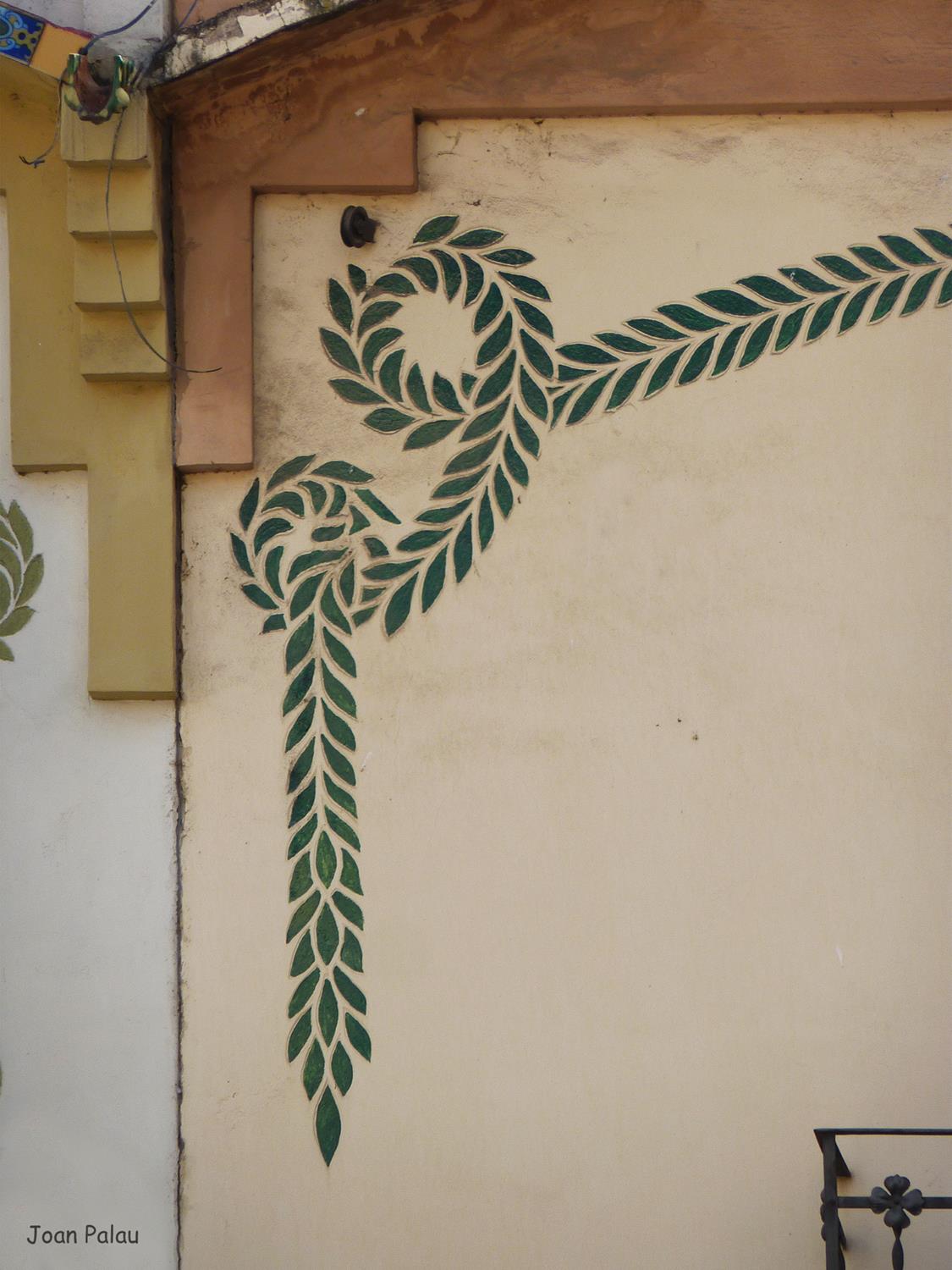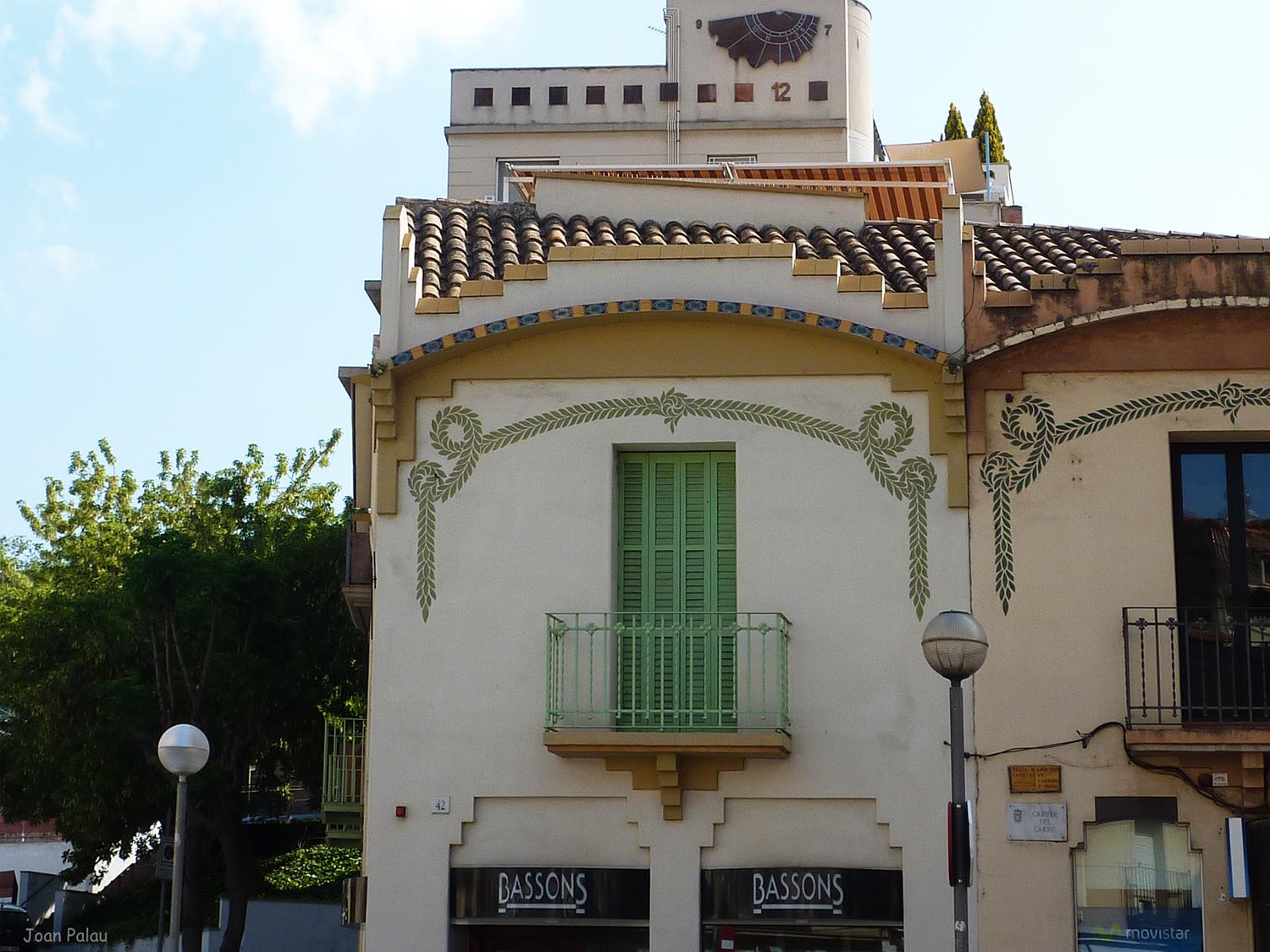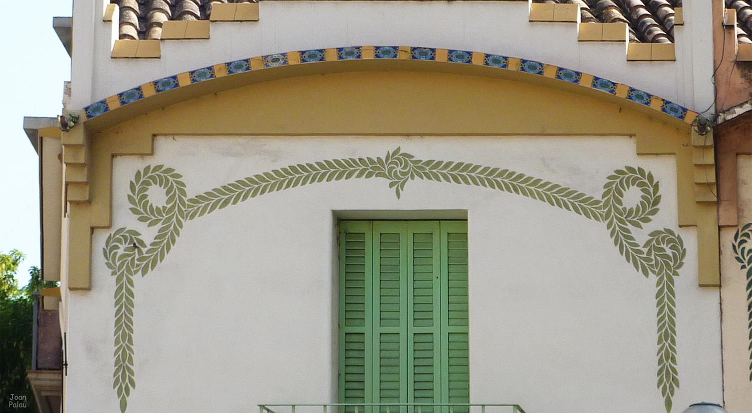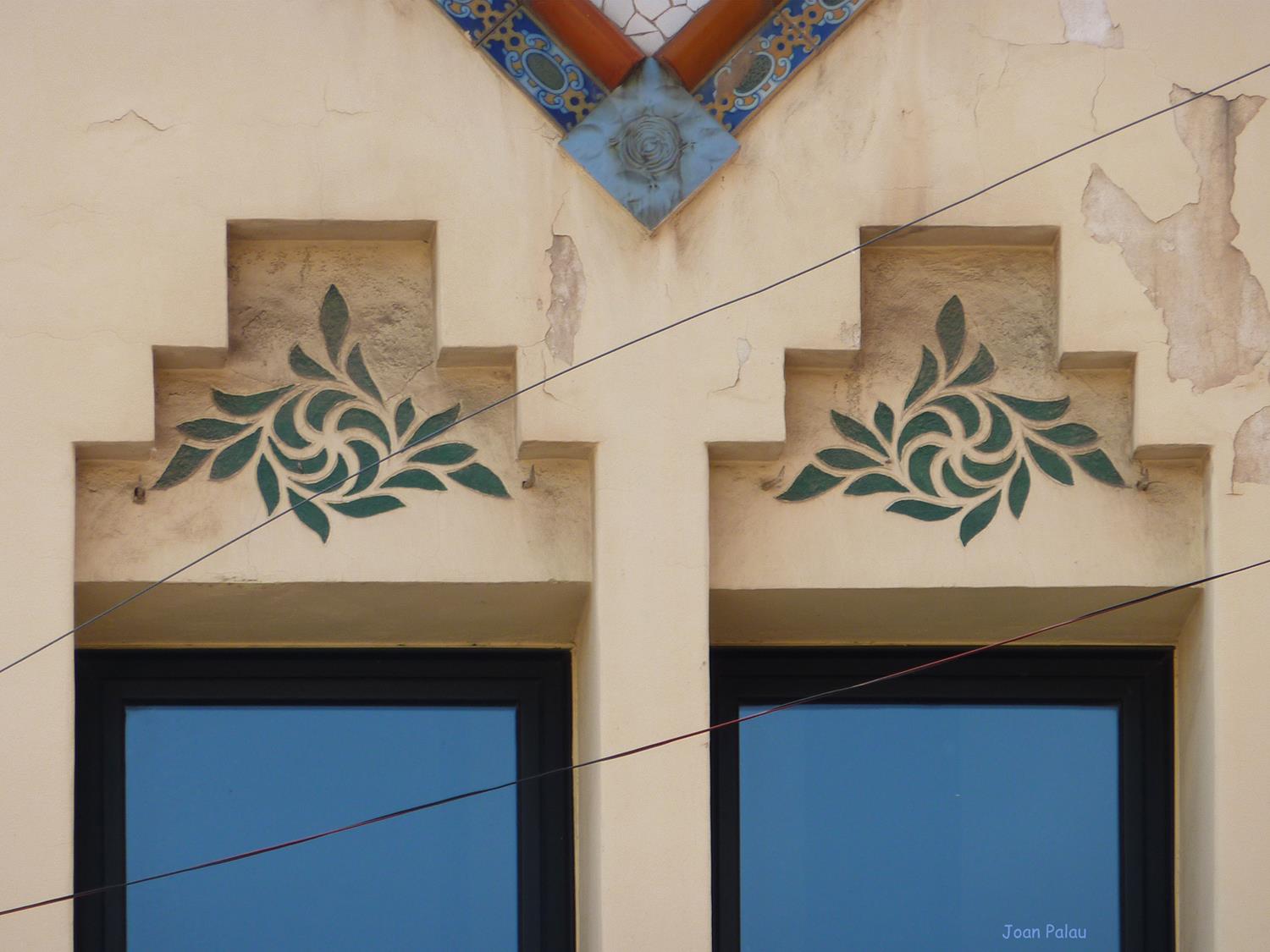 Destaquen els detalls ornamentals a base de ceràmica, esgrafiats, obertures dentades i merlets als coronaments.