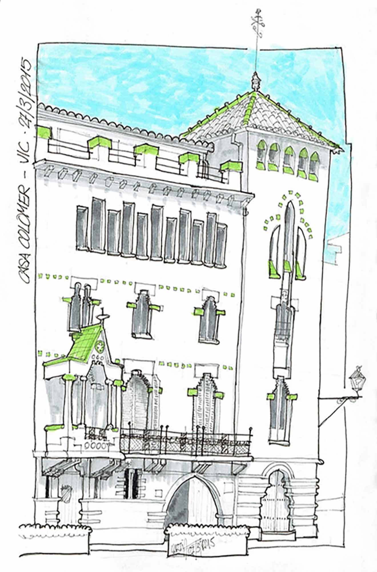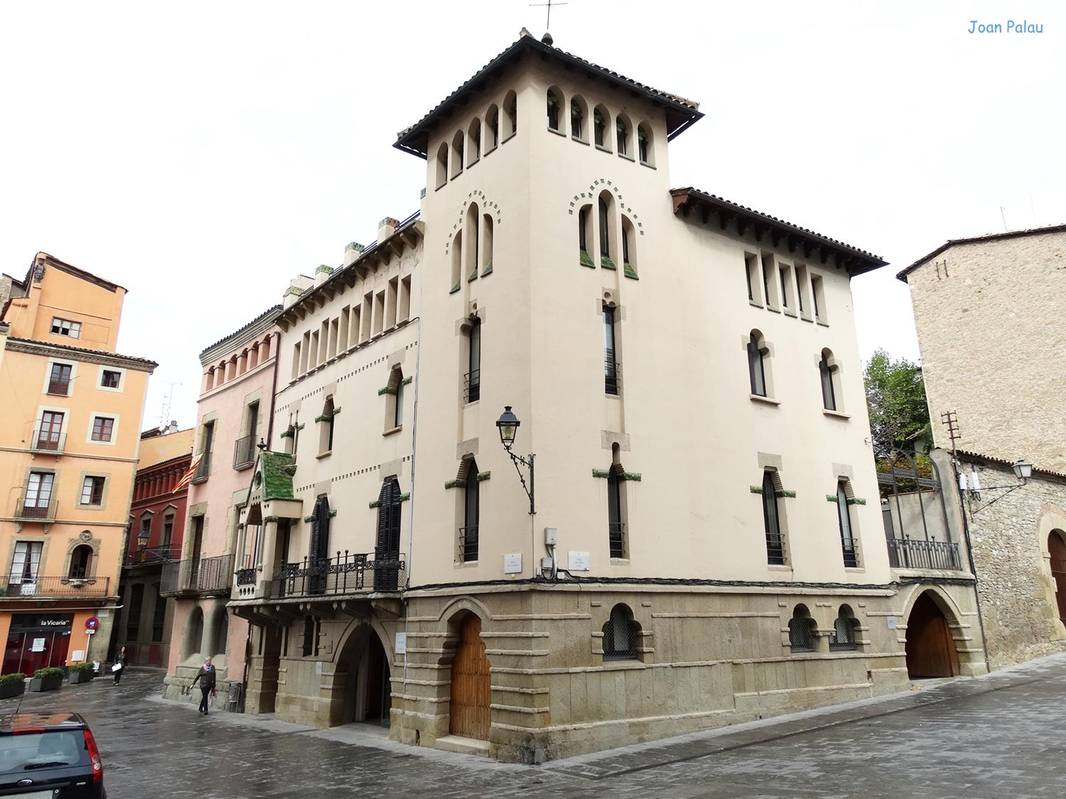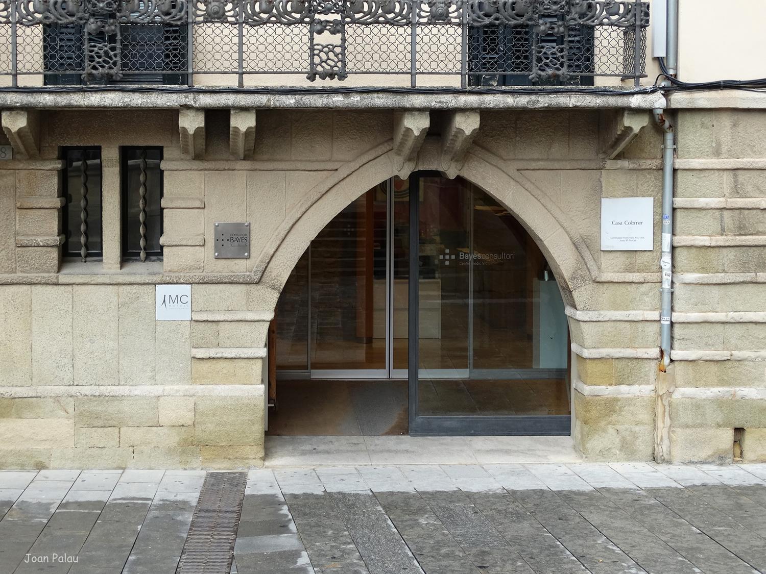 La apariencia de este edificio se debe a la reforma de marzo de 1906, cuando la propietaria, Anita Colomer, pidió licencia para reformar las dos casas que tenía en la plaza. Se trata de la primera casa proyectada por Josep Maria Pericas, cuyo proyecto se basó en la unificación de las fachadas, con planta baja, tres pisos y buhardilla, formando esquina. Ambas fachadas están unidas por una torre que se eleva un piso más respecto al resto del edificio. La cubierta está en una vertiente, excepto la torre a cuatro, con teja árabe.