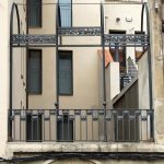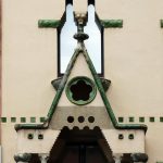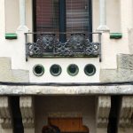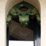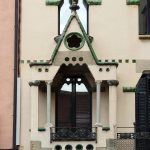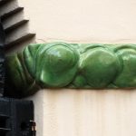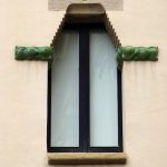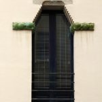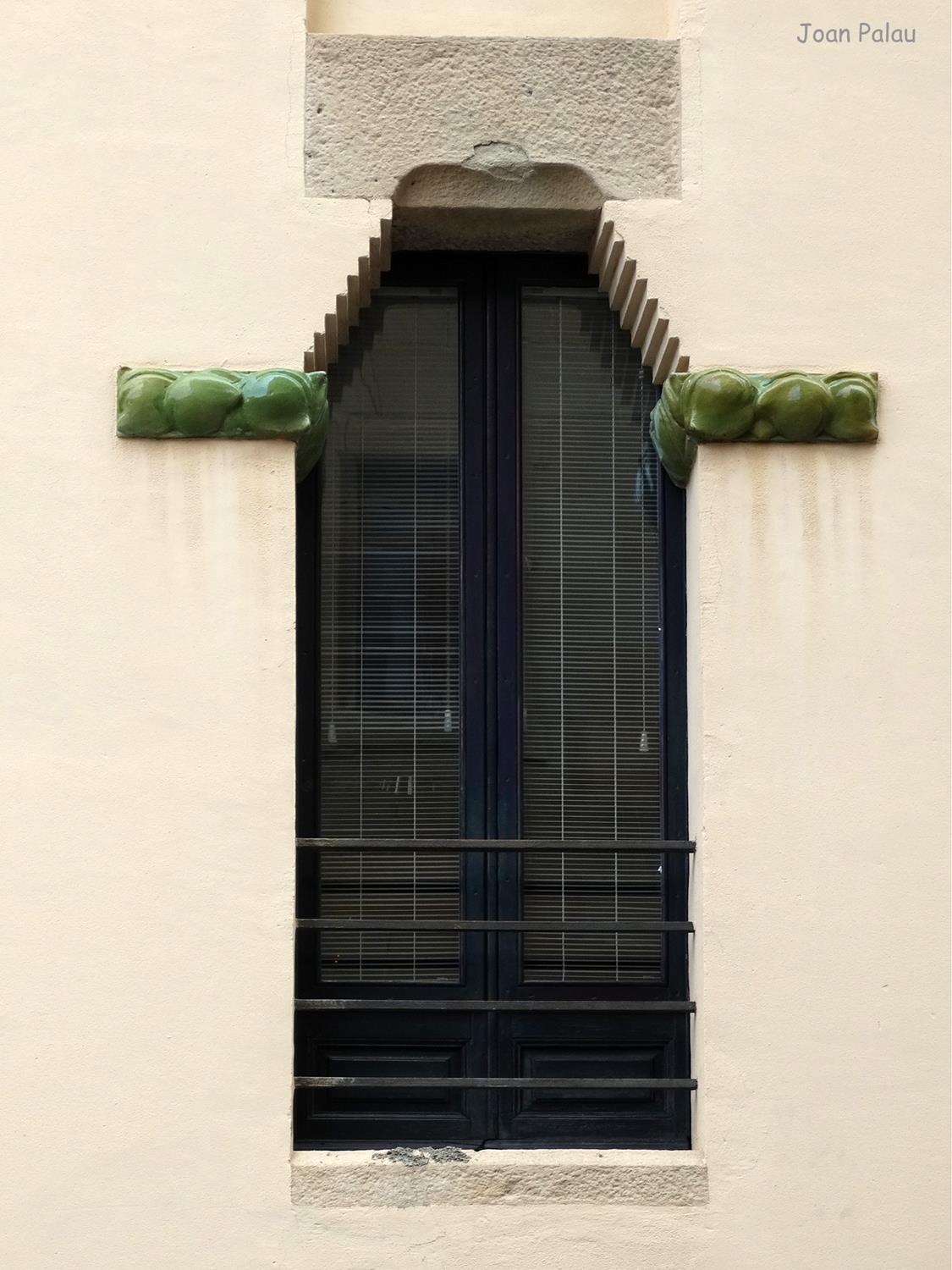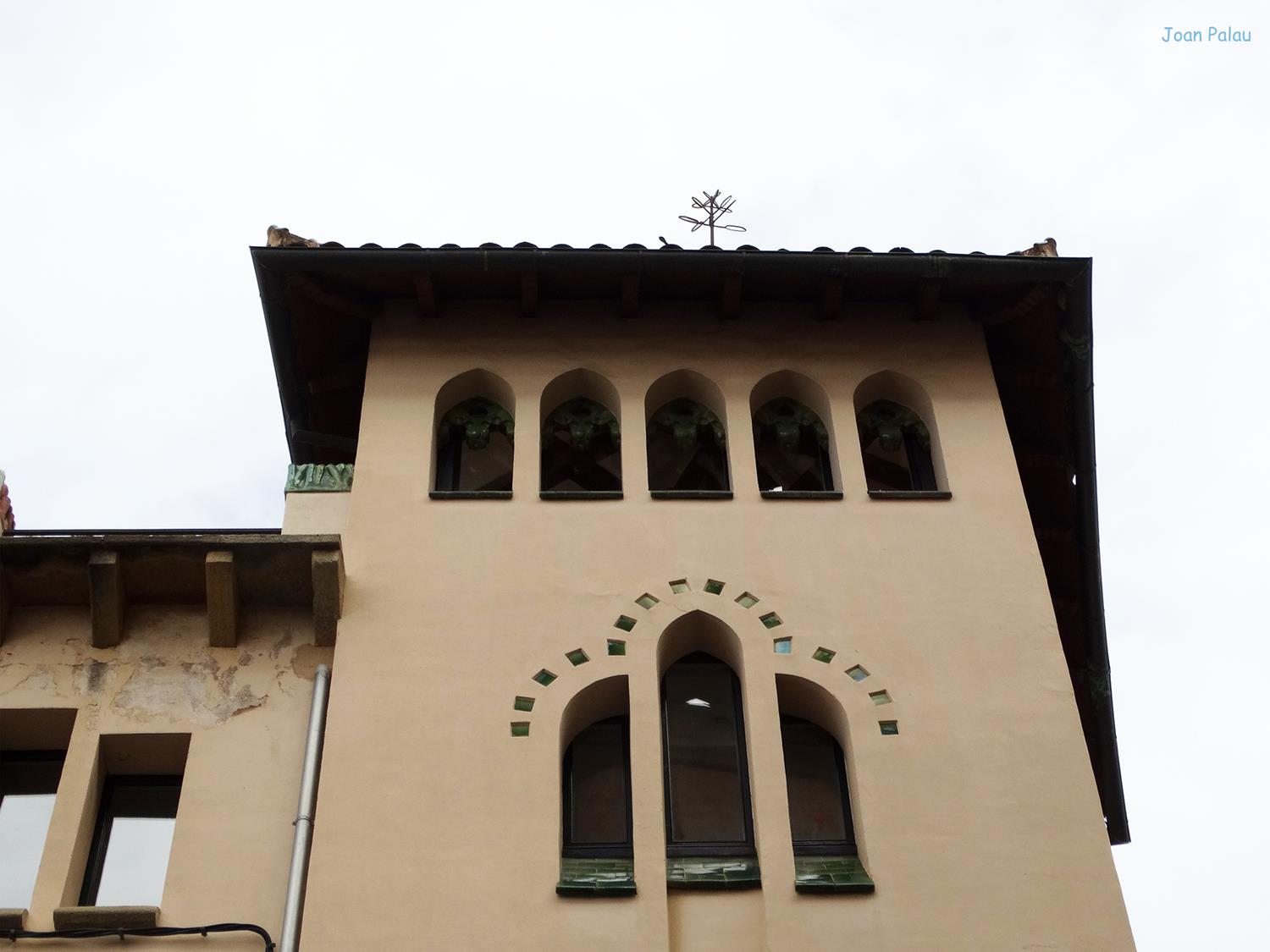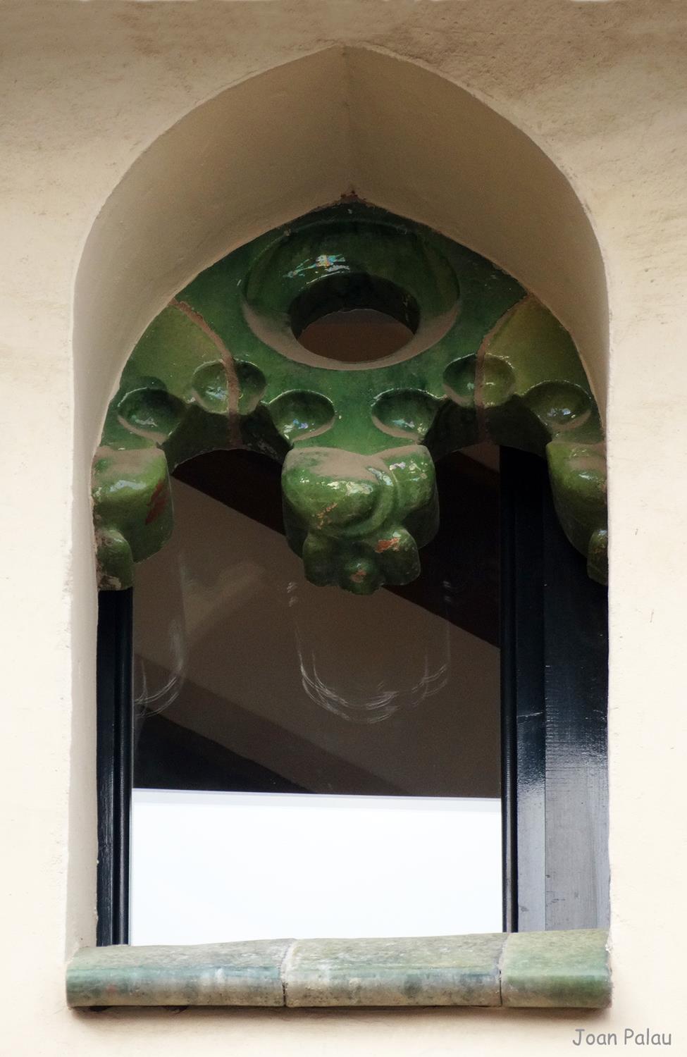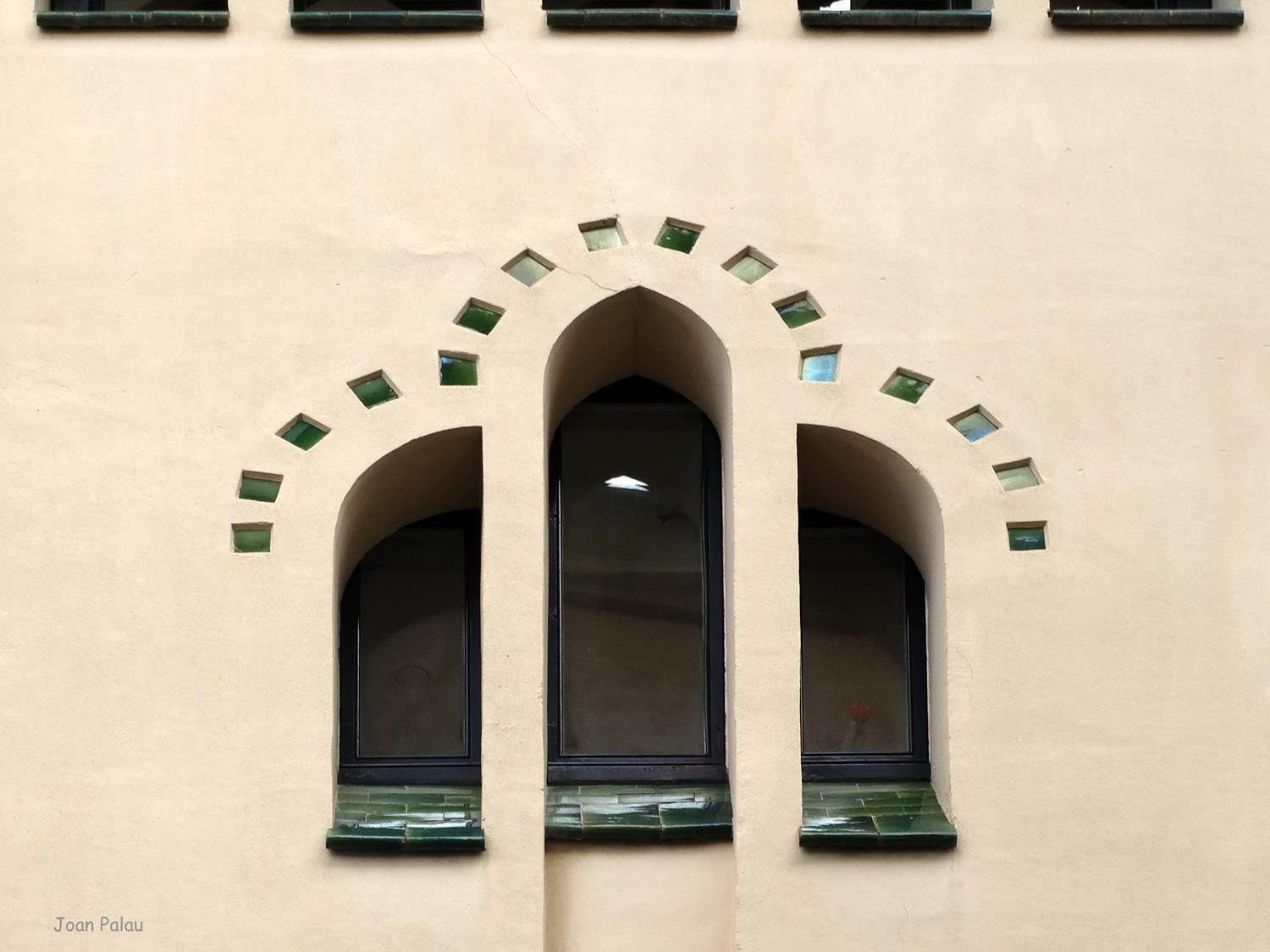 El edificio destaca por la tribuna decorada que se encuentra en el balcón del primer piso, la barandilla de hierro forjado del balcón corrido, las ventanas de formas irregulares y decrecientes en función de la altura y los elementos de cerámica verde distribuidos a lo largo de la fachada.