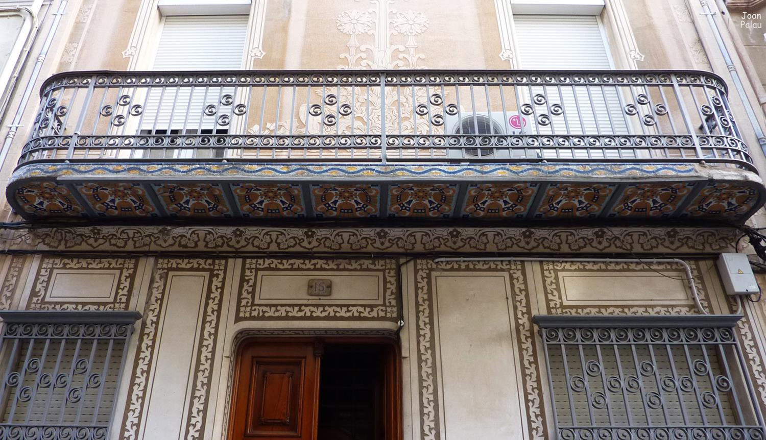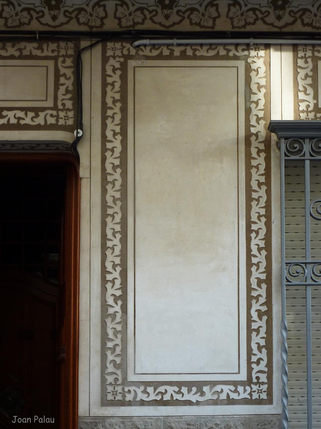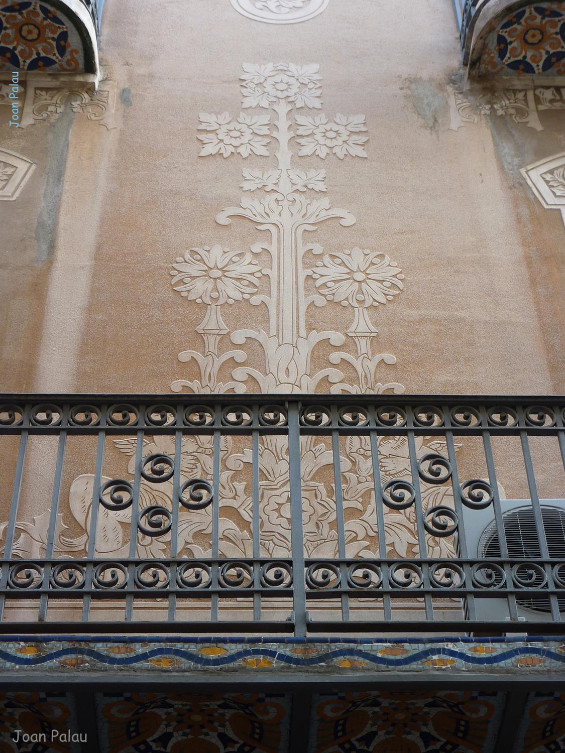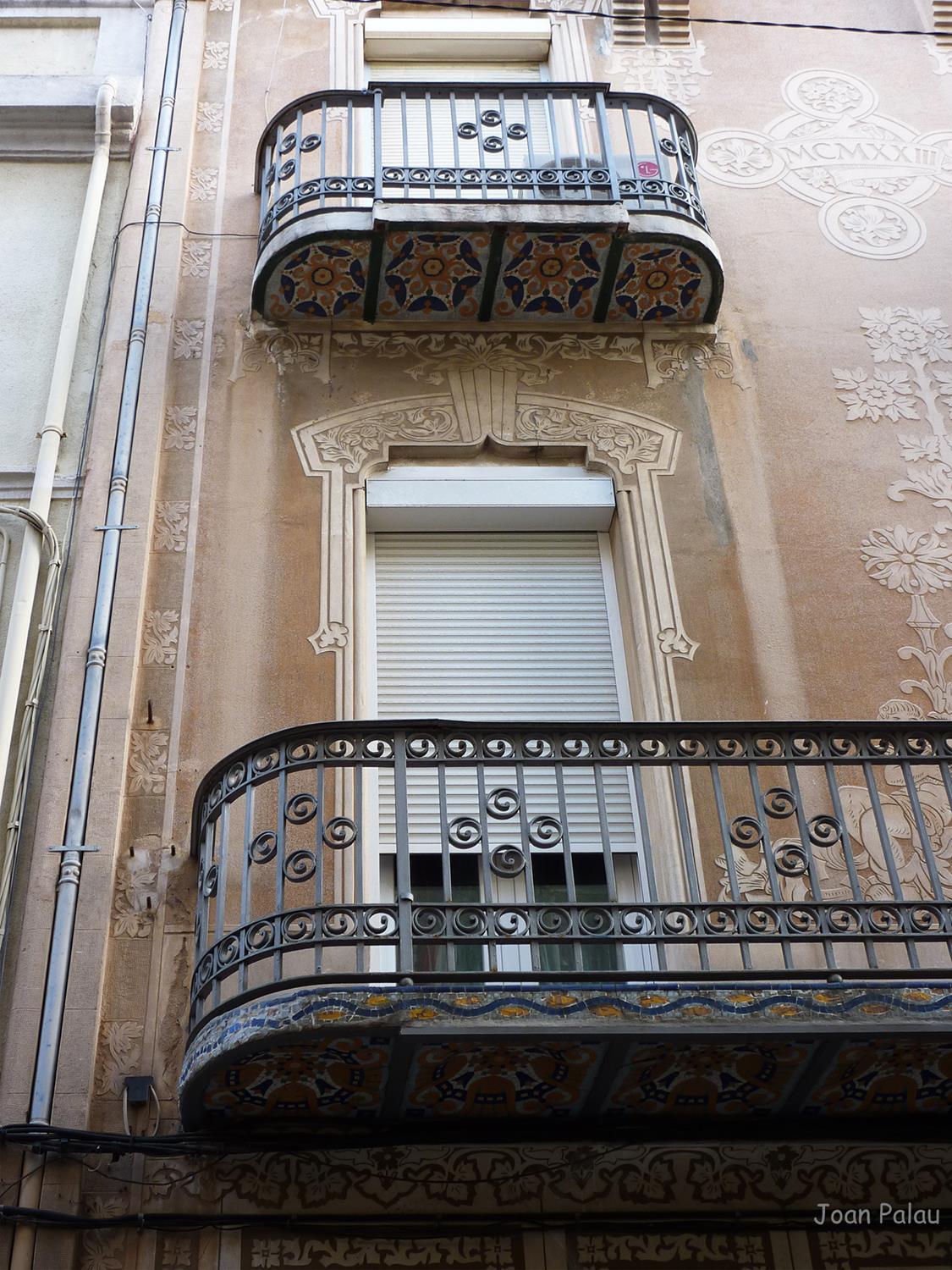 También es de destacar el trabajo de ebanistería de las puertas, las rejas y barandillas de hierro forjado y especialmente los bajo-balcones decorados con “trencadís” de cerámica de Manises, representando composiciones circulares con una estrella inscrita, con una rica policromía.