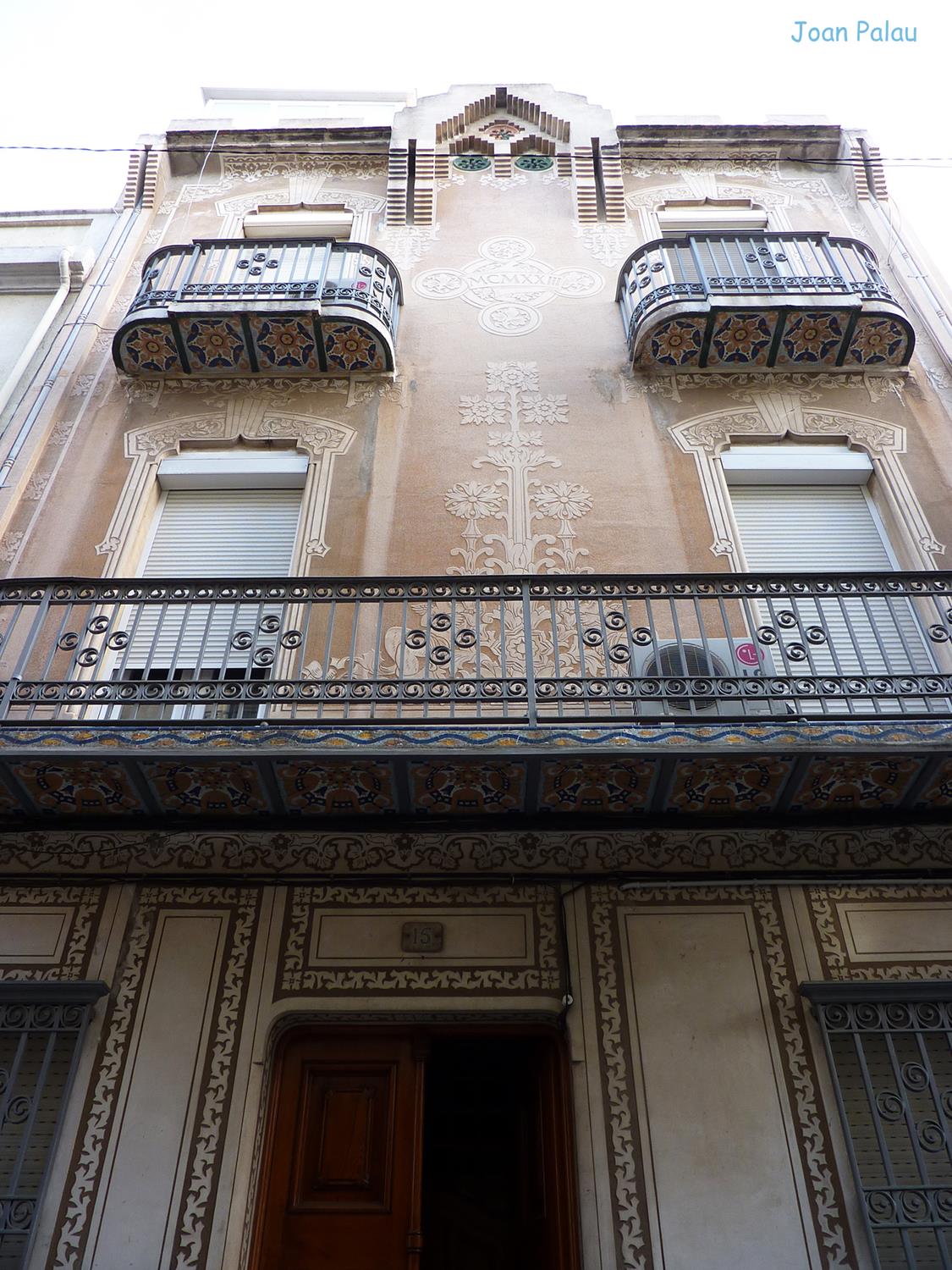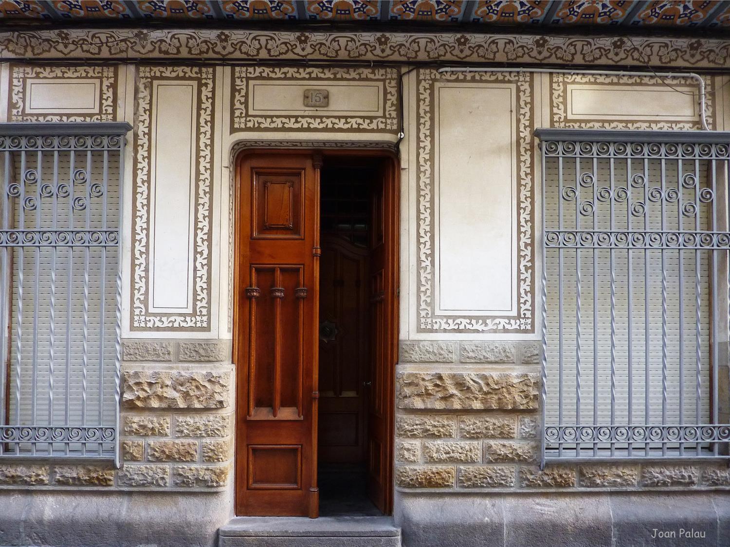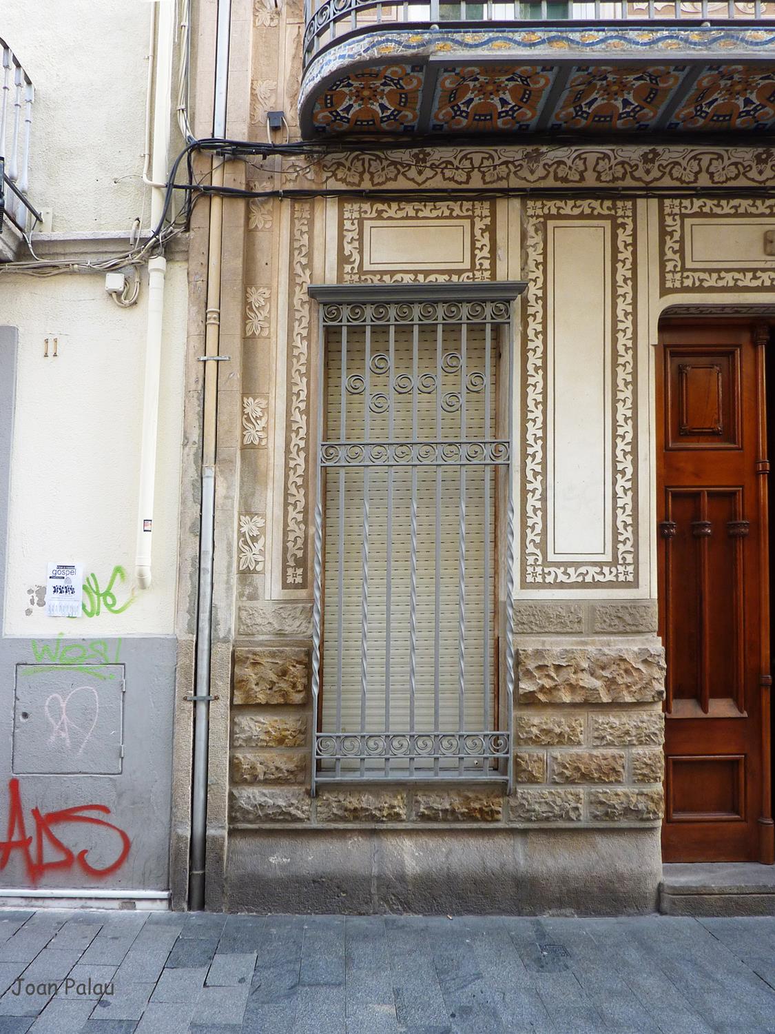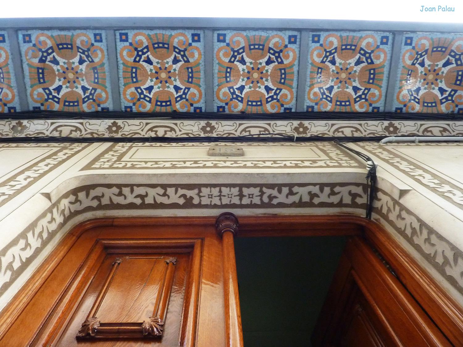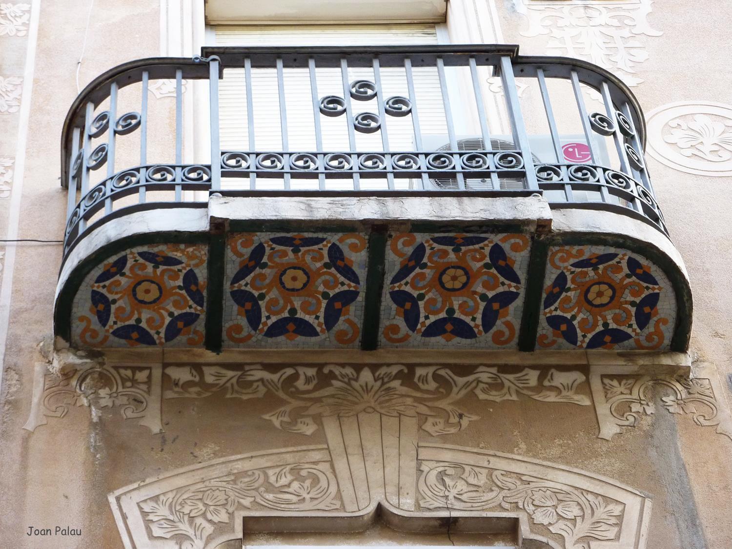 También es de destacar el trabajo de ebanistería de las puertas, las rejas y barandillas de hierro forjado y especialmente los bajo-balcones decorados con “trencadís” de cerámica de Manises, representando composiciones circulares con una estrella inscrita, con una rica policromía.