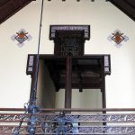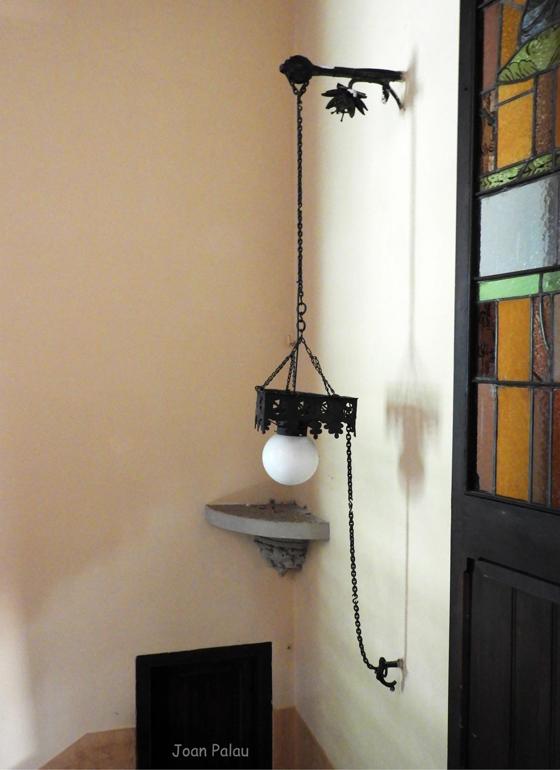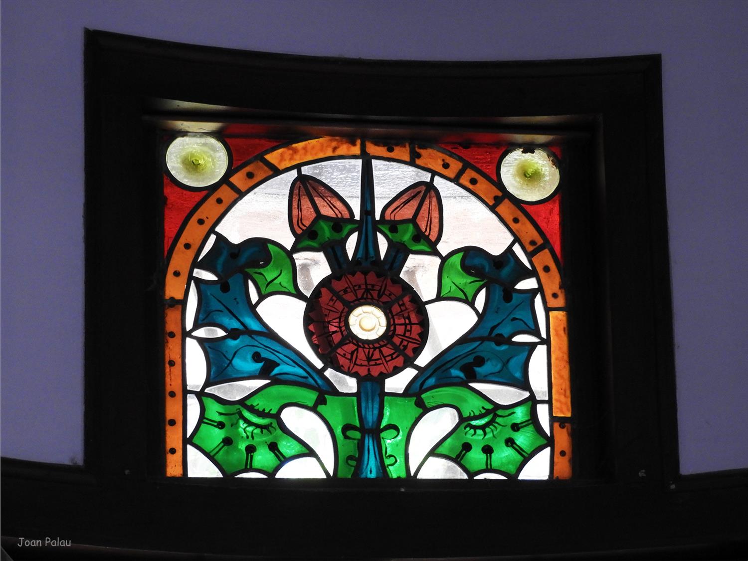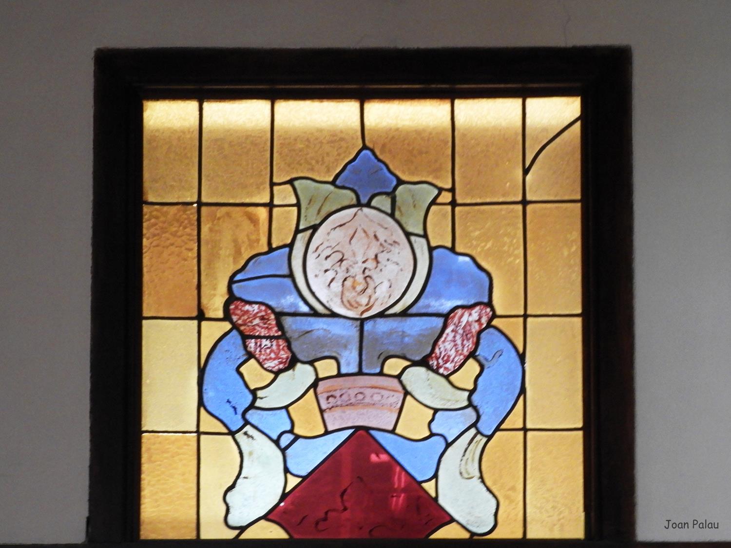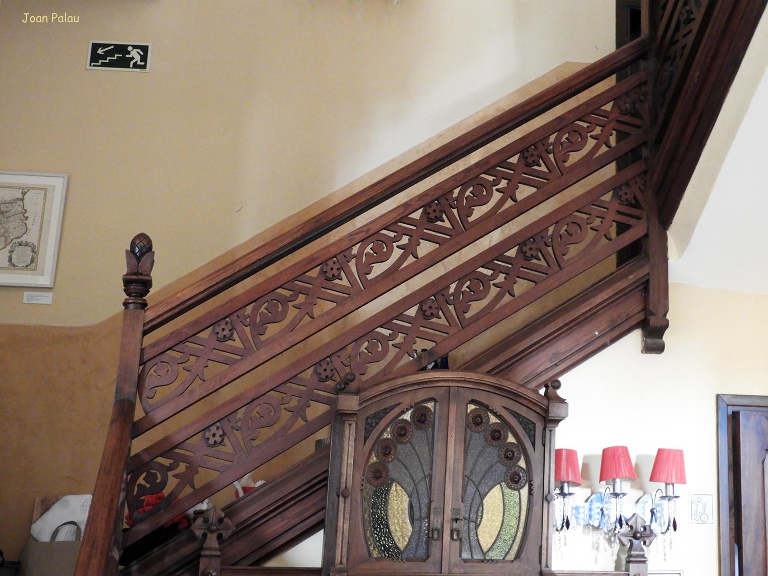 Además son destacables los trabajos de forja de las lámparas y faroles, las cristaleras de colores y la ebanistería del techo.