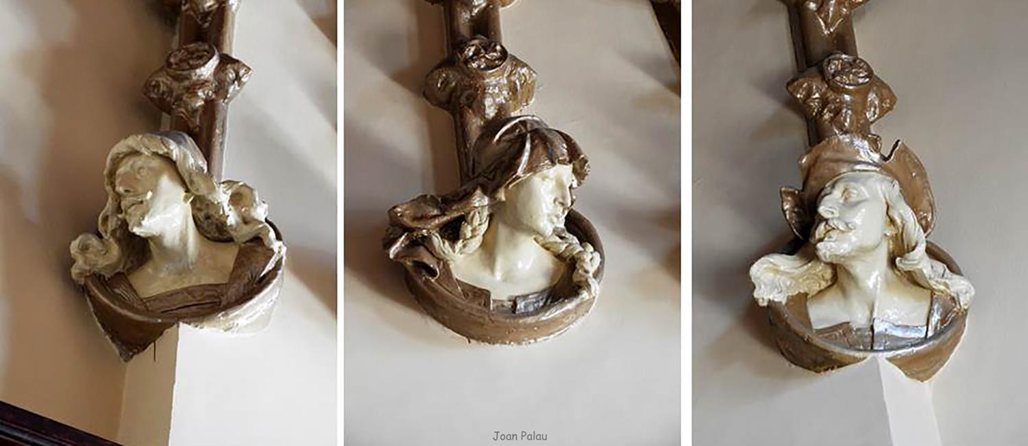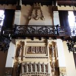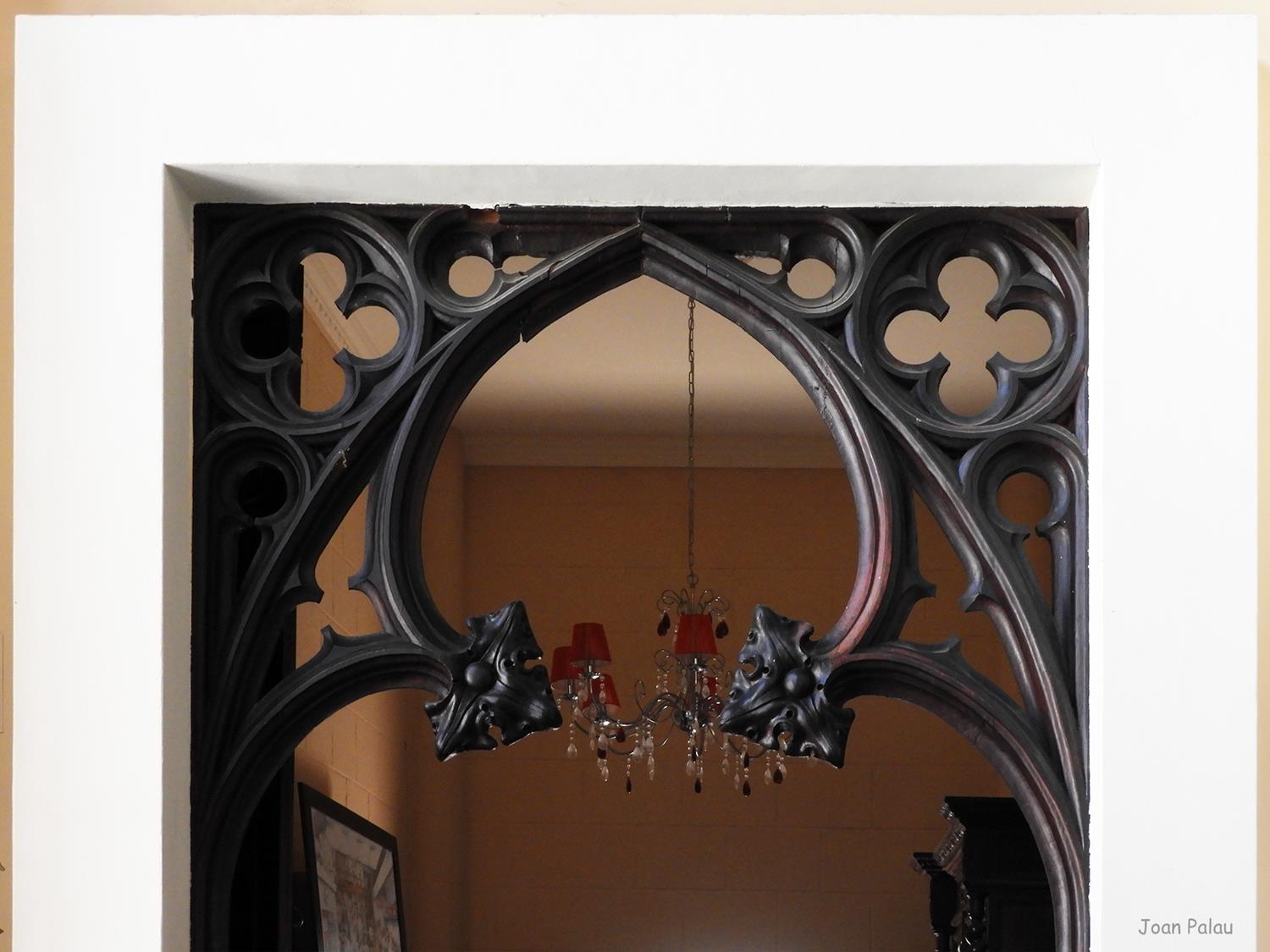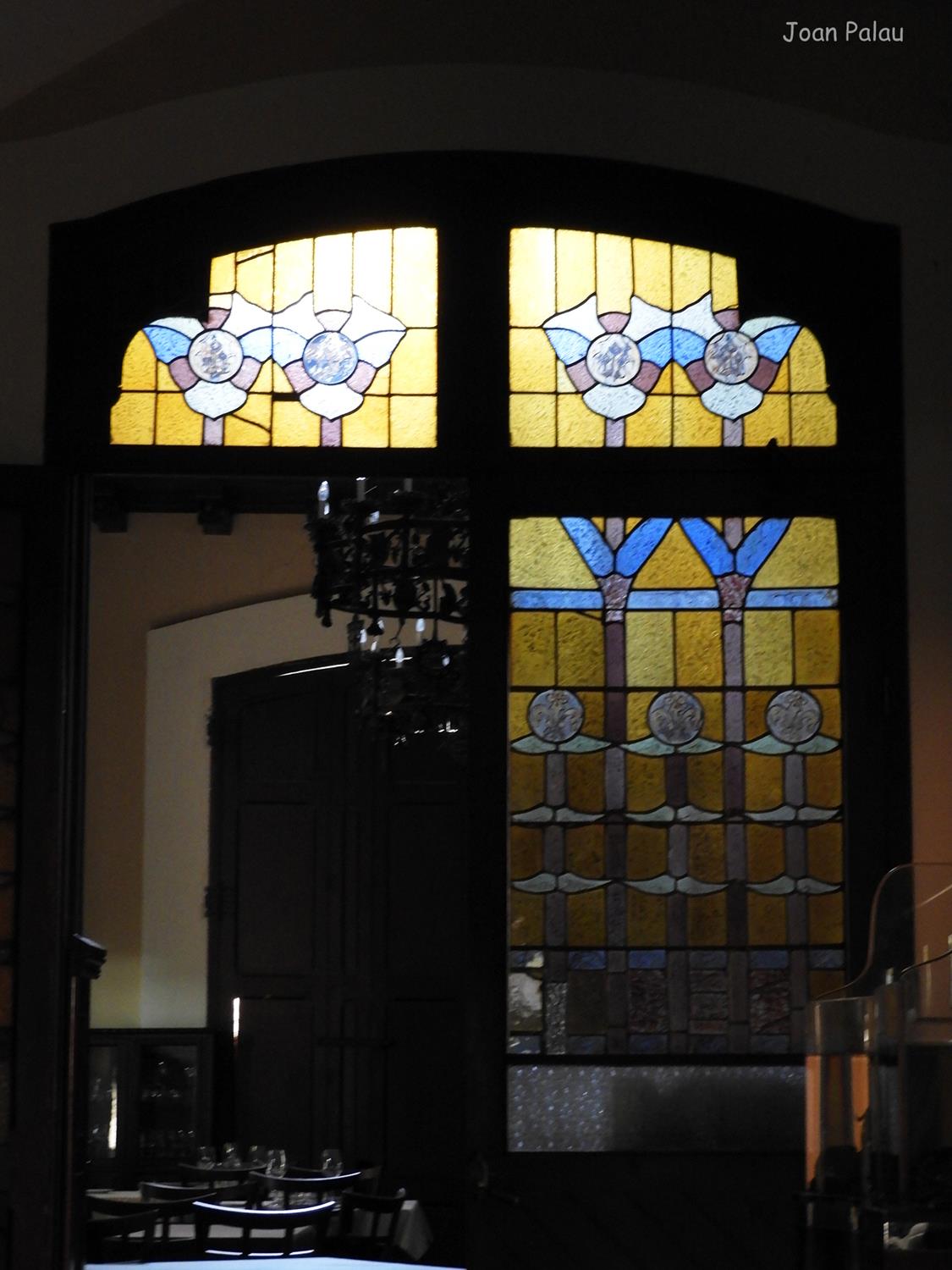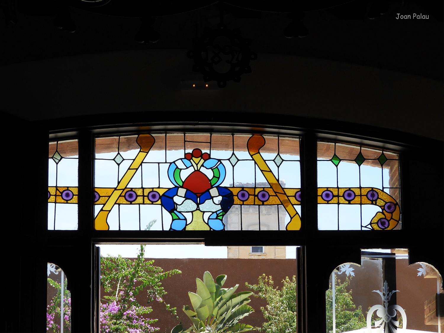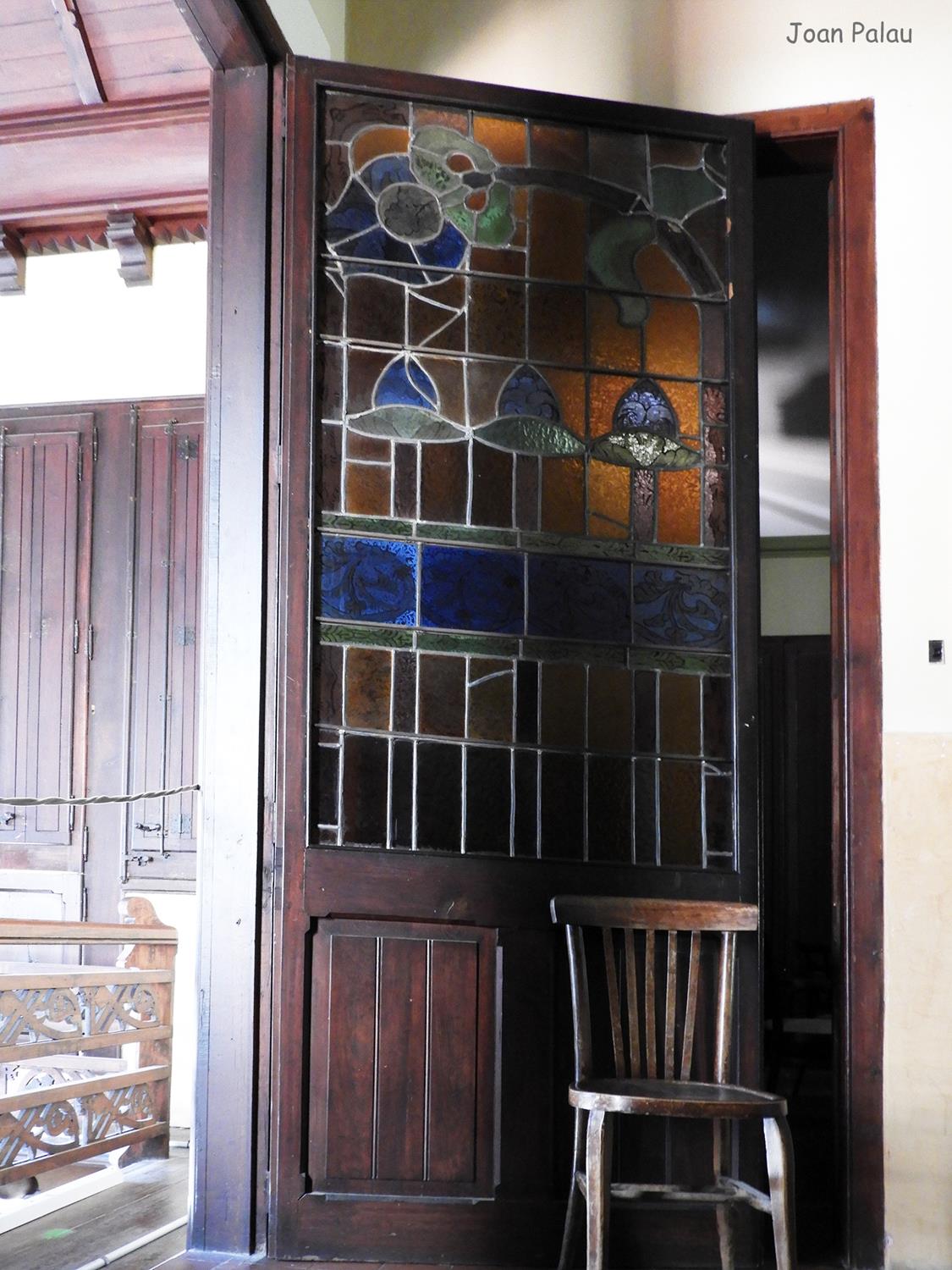 Además son destacables los trabajos de forja de las lámparas y faroles, las cristaleras de colores y la ebanistería del techo.