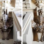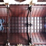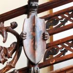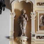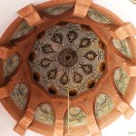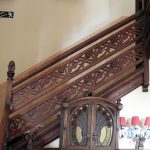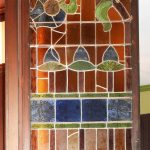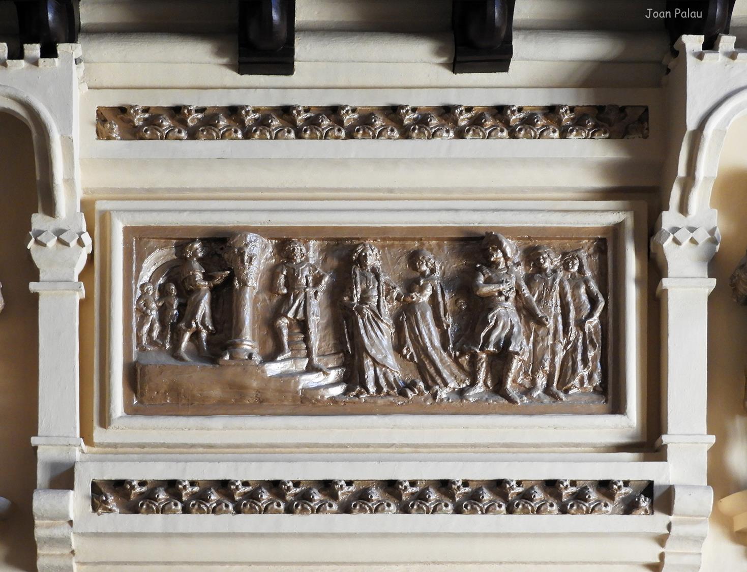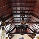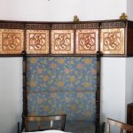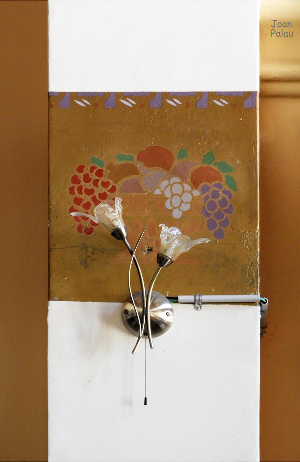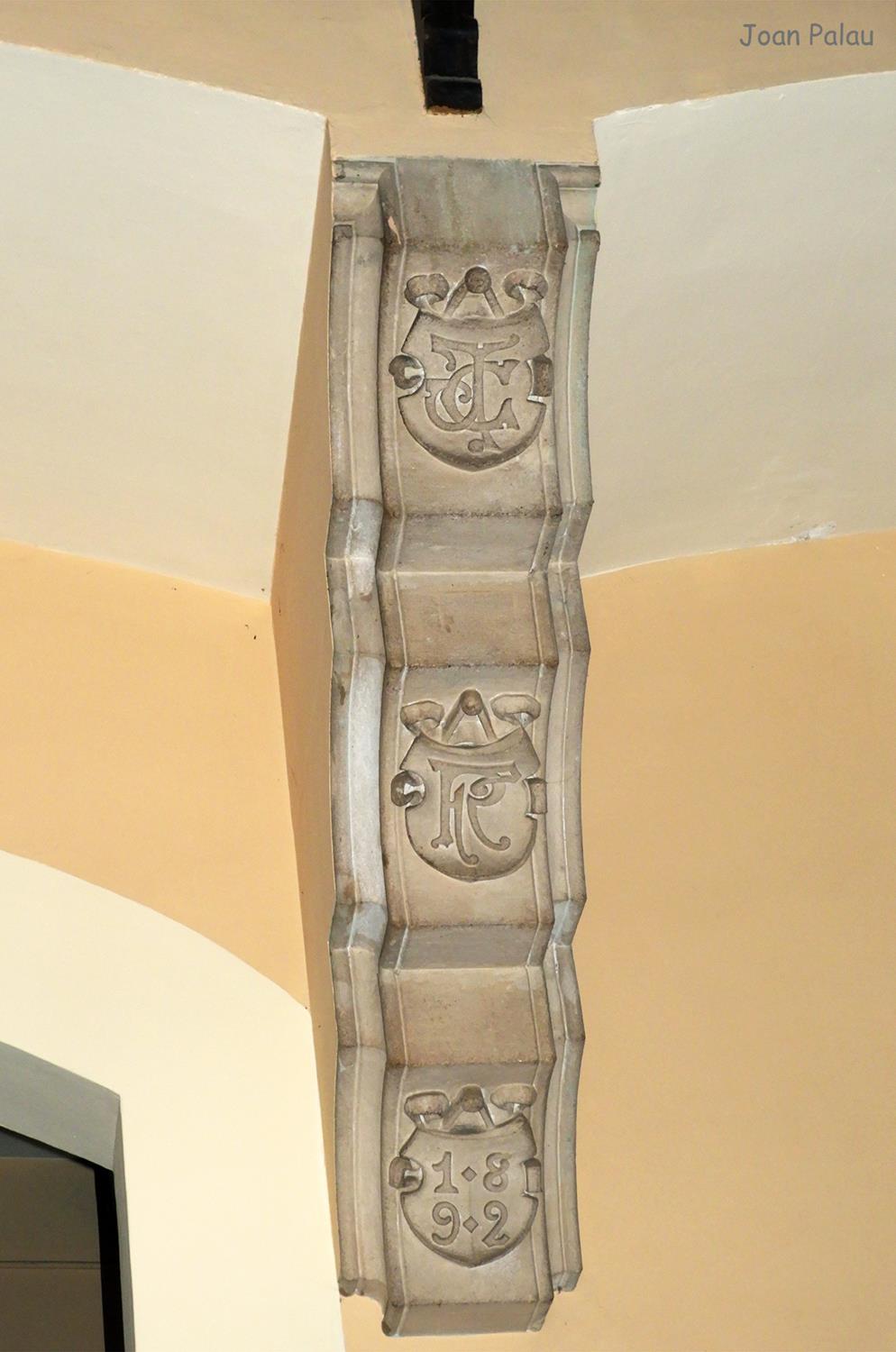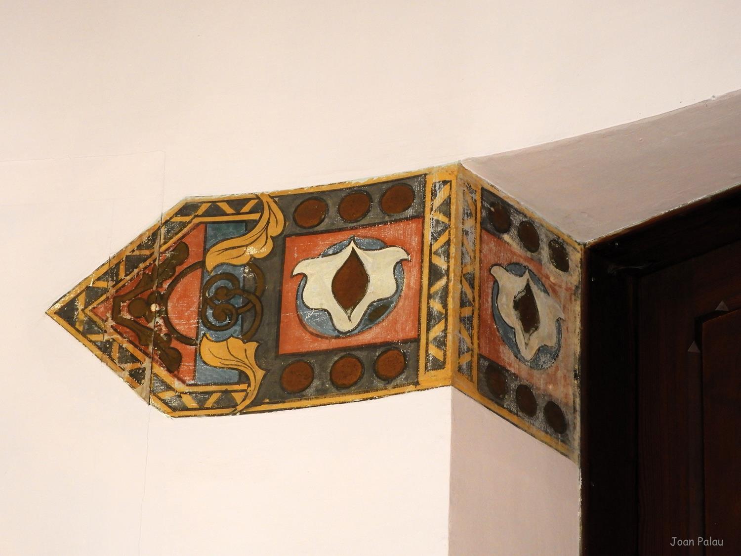 Además son destacables los trabajos de forja de las lámparas y faroles, las cristaleras de colores y la ebanistería del techo.