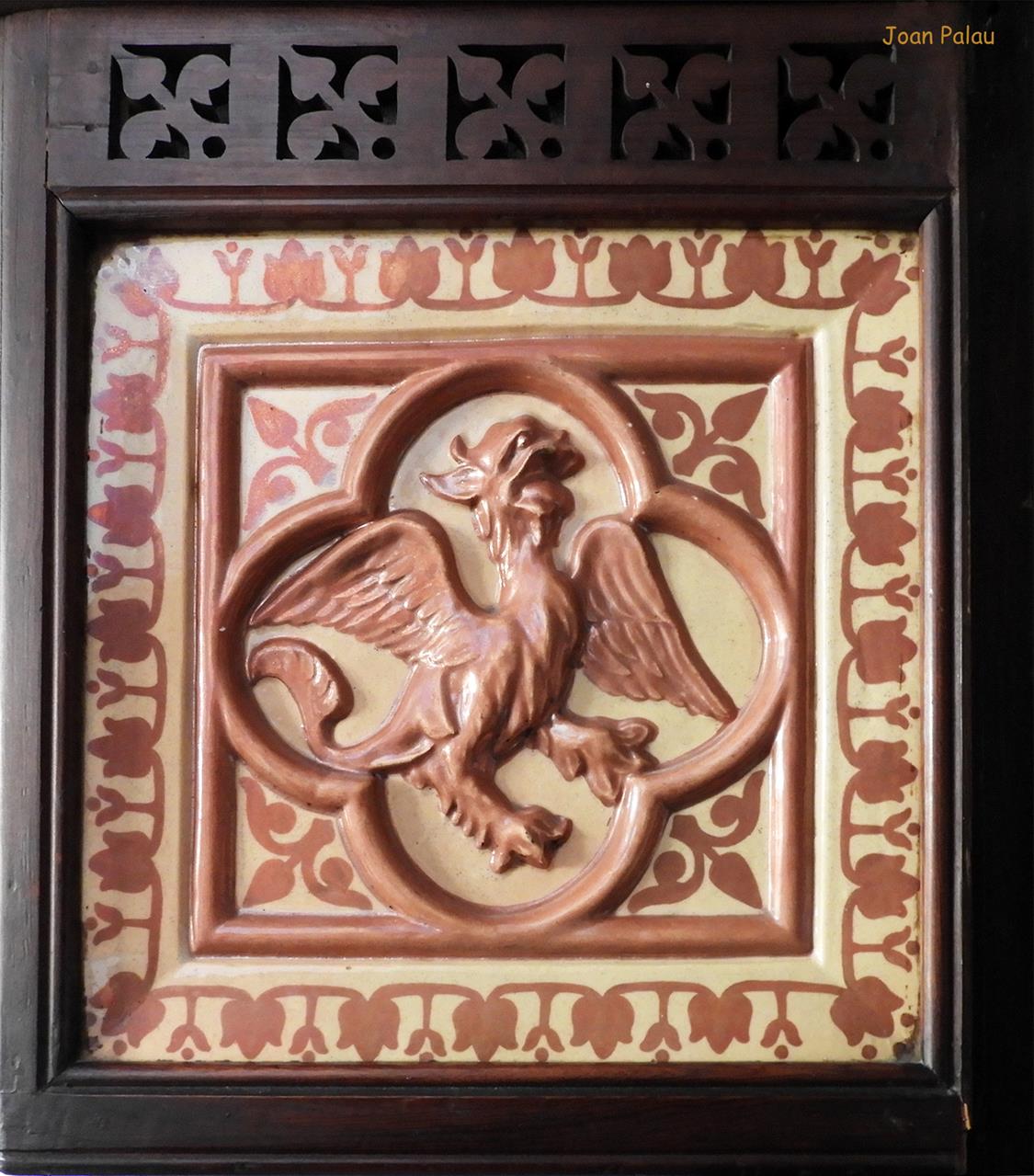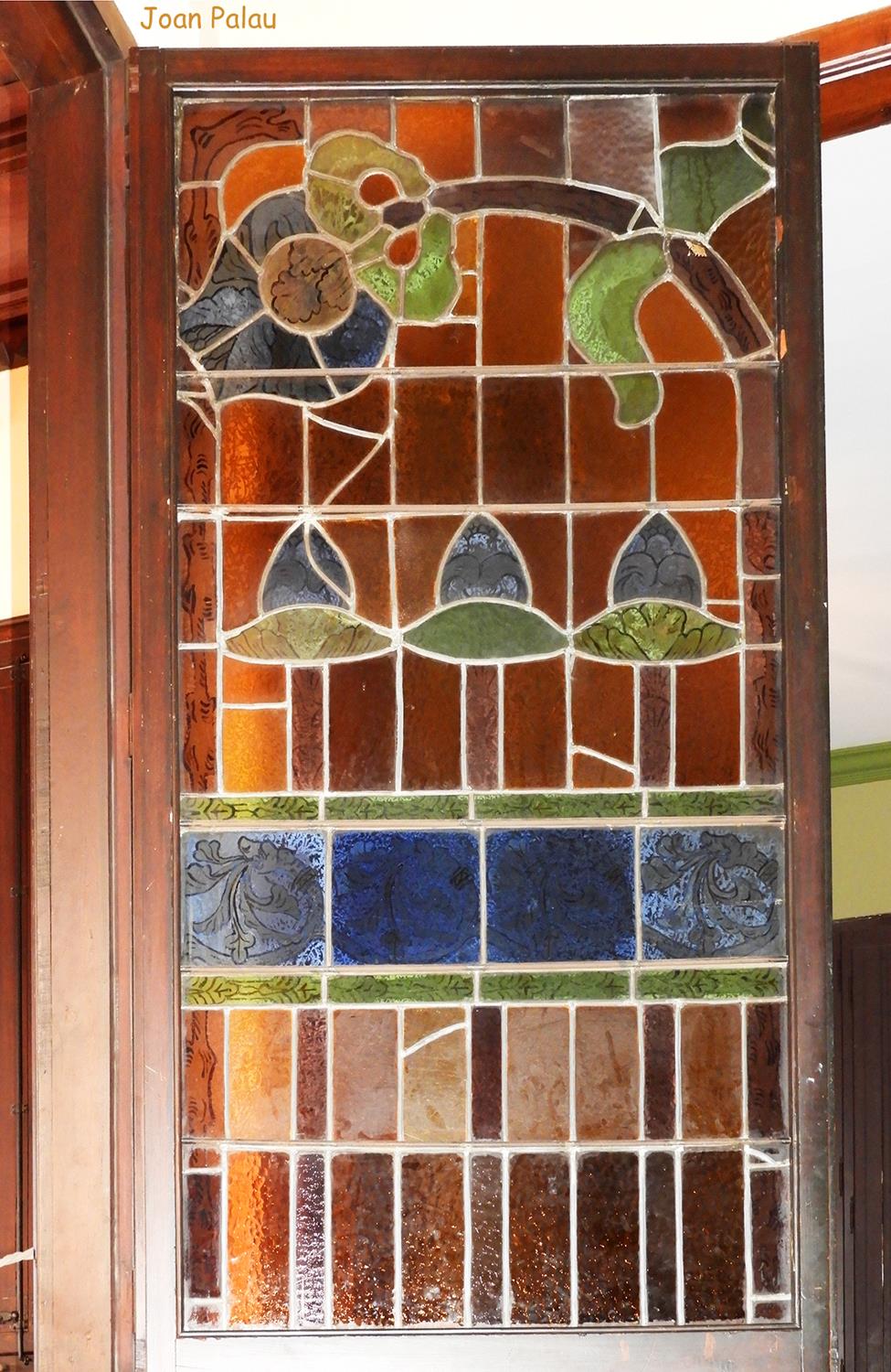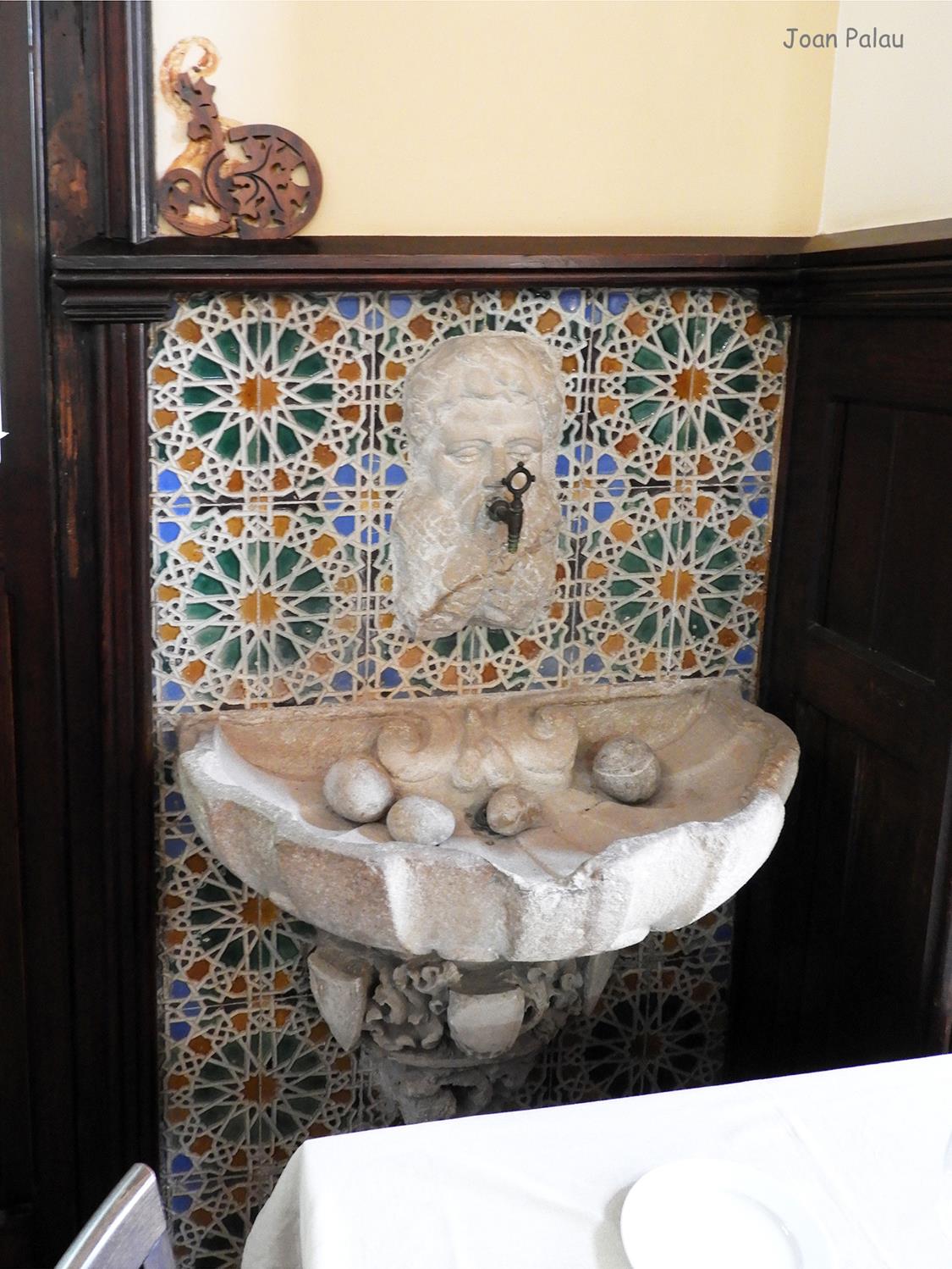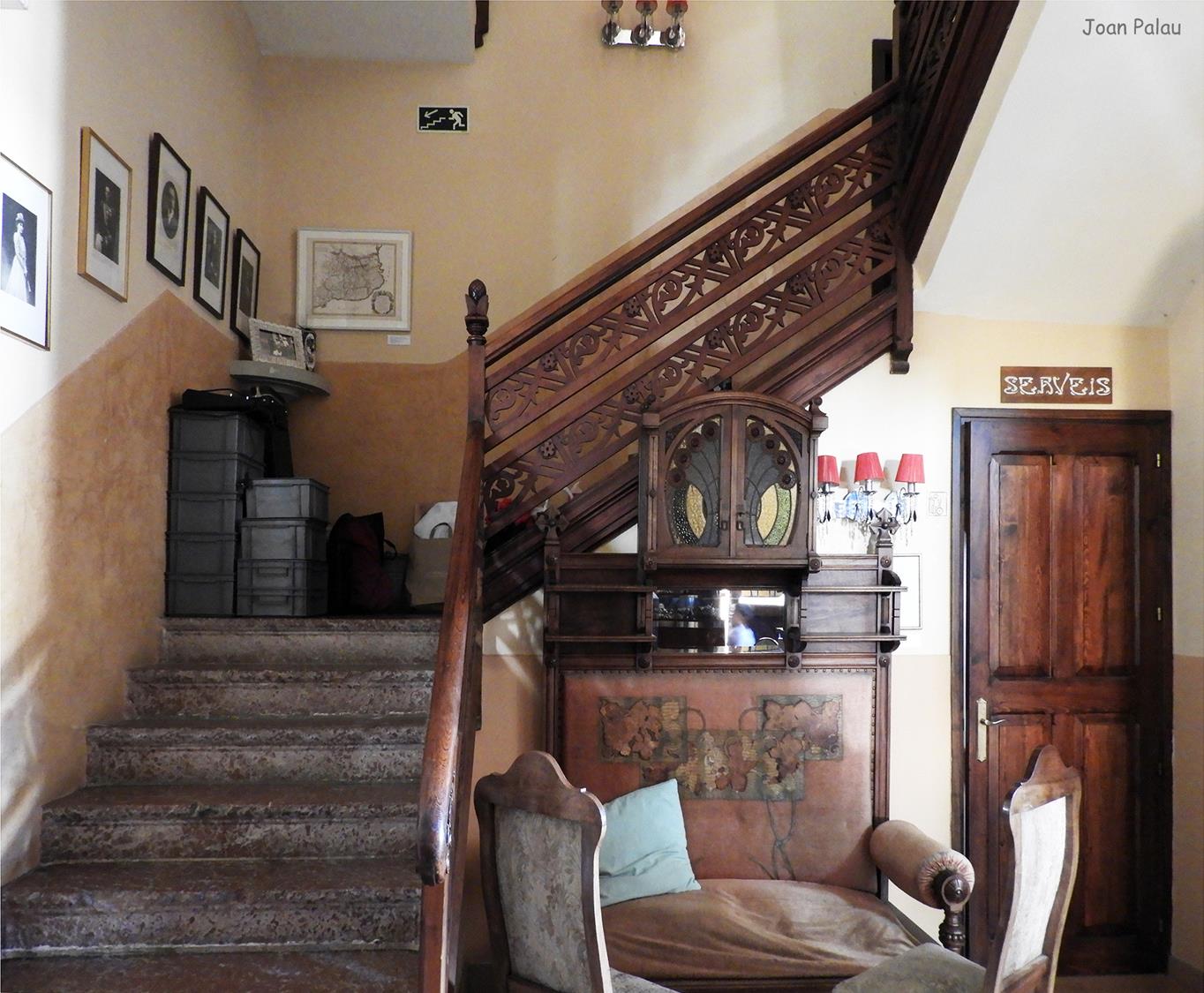 Del interior del edificio cabe destacar en la planta baja, el recibidor, el mirador redondo de la torre y especialmente el gran salón, con el mosaico de teselas con escenas de caza, elementos geométricos y una representación del tetramorfo. El salón principal ostenta toda la altura del edificio y esto permite dar más relieve a la gran chimenea de la sala, que cuenta con tres bustos (seguramente corresponden a los tres hijos que tuvo el matrimonio), diferentes elementos florales y un alto relieve del descubrimiento de América (la terminación de la casa coincide con el 400 aniversario del descubrimiento de América, 1492-1892).
