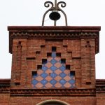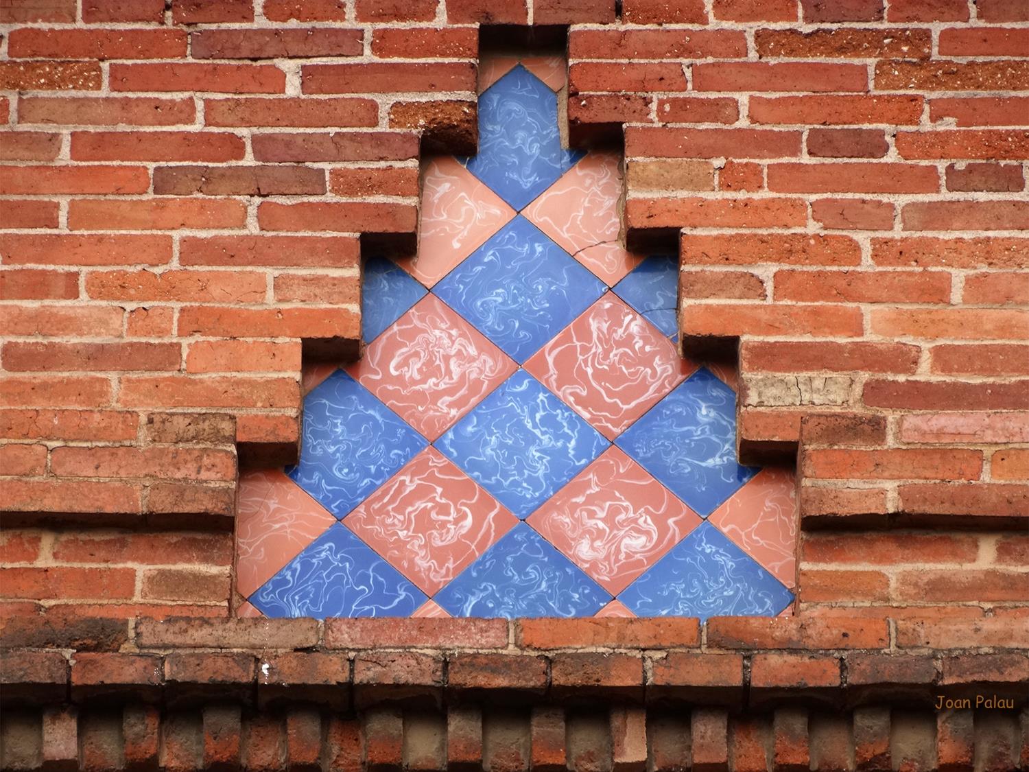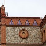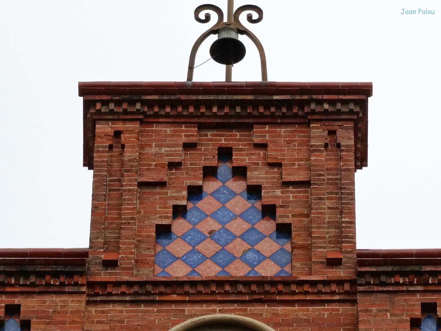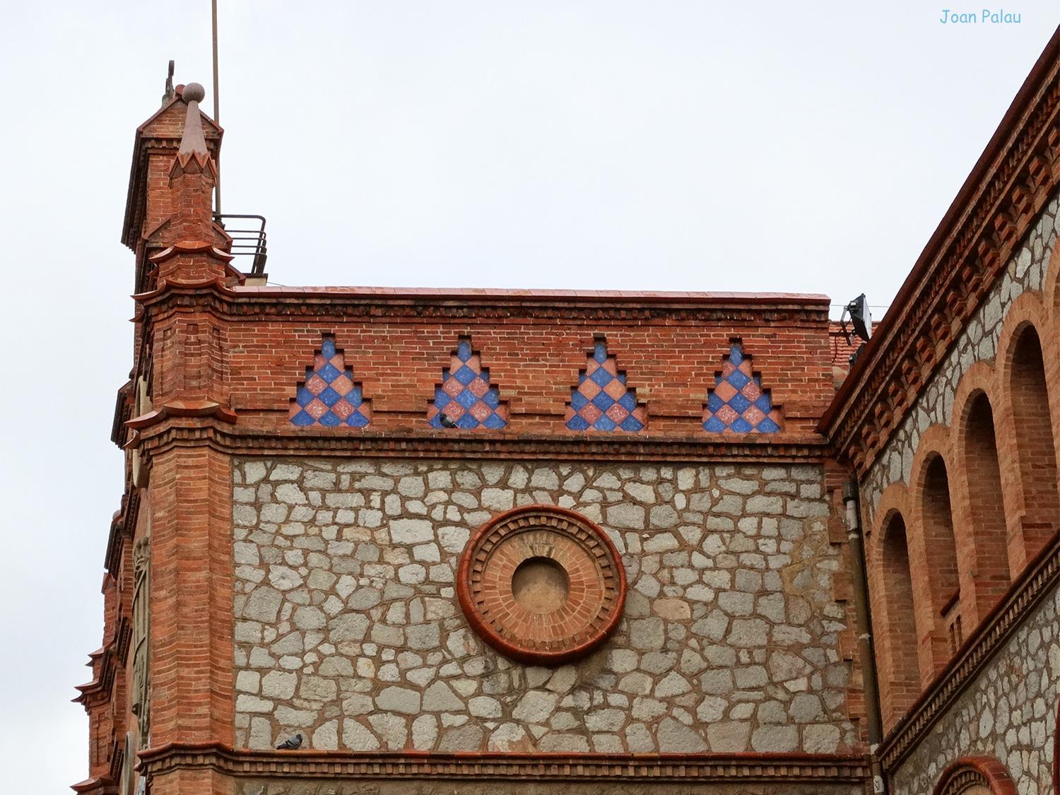 La decoración se basa en el ladrillo visto, y las aplicaciones cerámicas de color que contrastan con los muros de mampostería común y la piedra arenisca de las columnas cuatrilobuladas de los accesos, con capiteles dóricos con motivos vegetales. El fundamento decorativo se basa en la composición del propio ladrillo visto, formando dibujos geométricos.