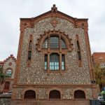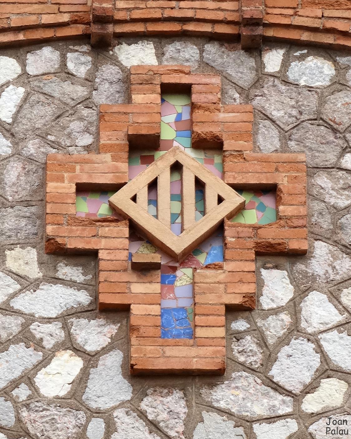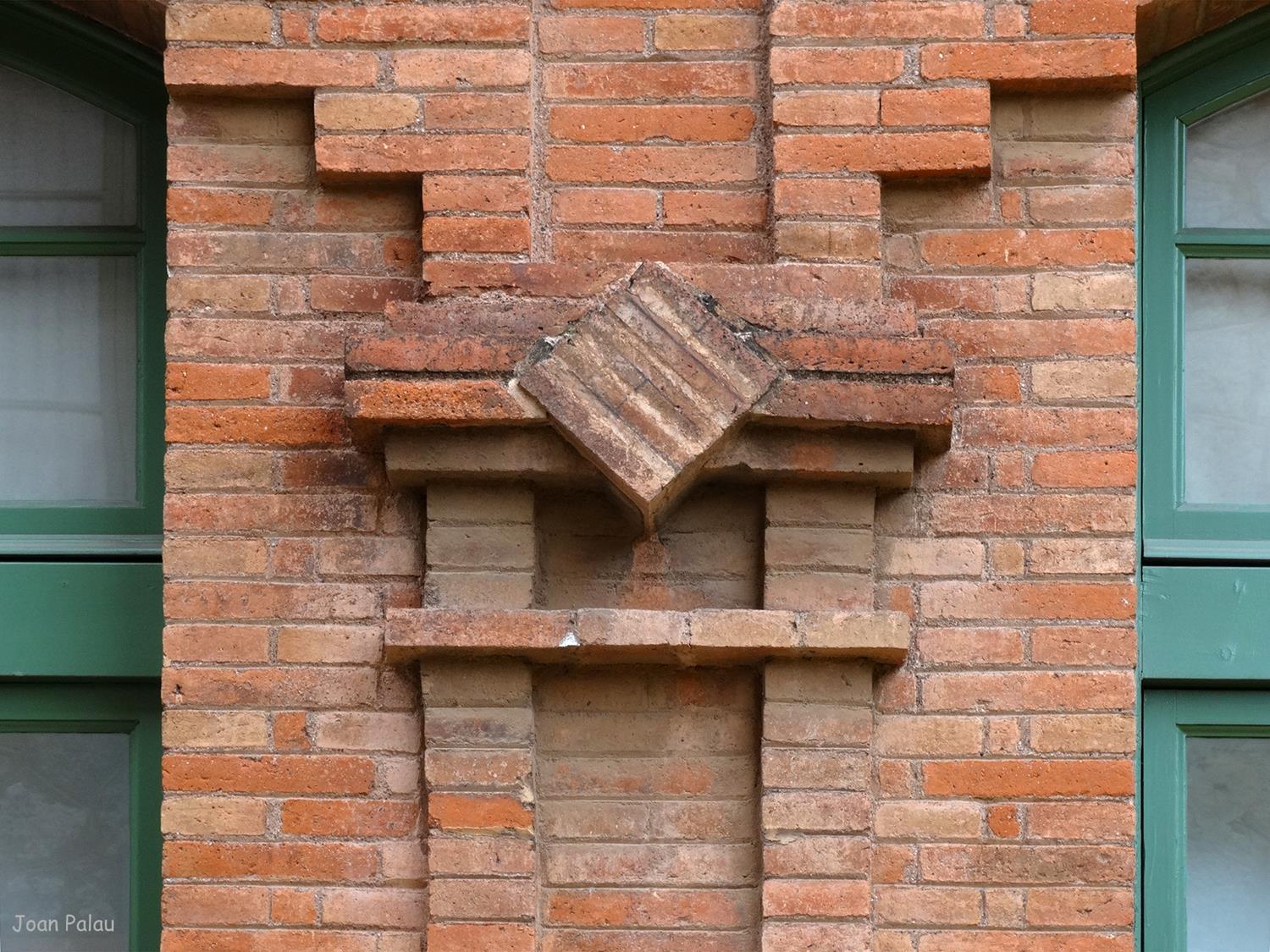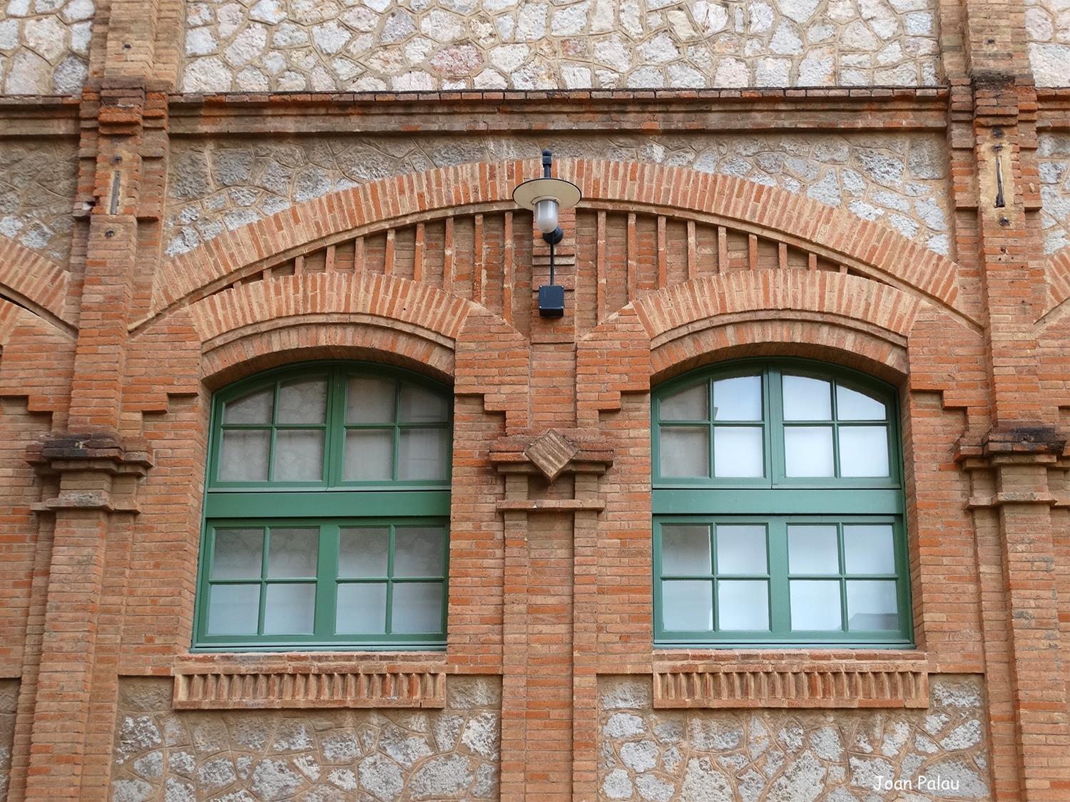 En esta fachada de mampostería enmarcada por ladrillo visto, destacan: la apertura en arco de semicírculo de ladrillo visto y dividido en tres ventanas por dos columnas de ladrillo visto y dos aberturas estrechas y verticales a ambos lados y por debajo, otra abertura dividida en tres ventanas por dos columnas de obra vista, la central más grande en arco rebajado y las laterales rectangulares con las jambas de obra vista. Por encima de todo, un escudo de Cataluña y más arriba un arco de ladrillo semicircular rebajado sostiene la cornisa moldurada de ladrillo visto. La cubierta del edificio está a dos aguas.
