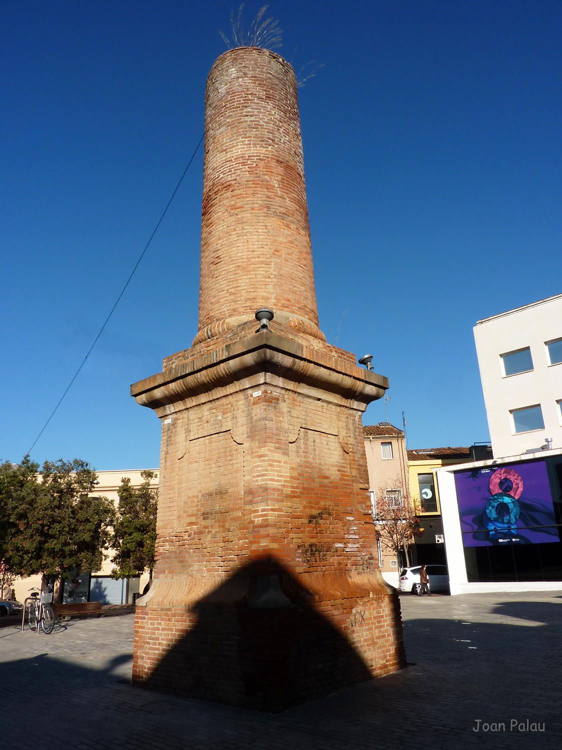 En frente de la nave hay una zona urbanizada (Plaza Didó), donde se ha mantenido la parte baja de la antigua chimenea del vapor.